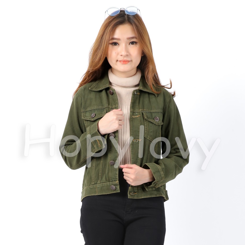 HOPYLOVY JAKET JEANS WARNA HIJAU ARMY STANDARD SIZE Sumber : shopee.co.id